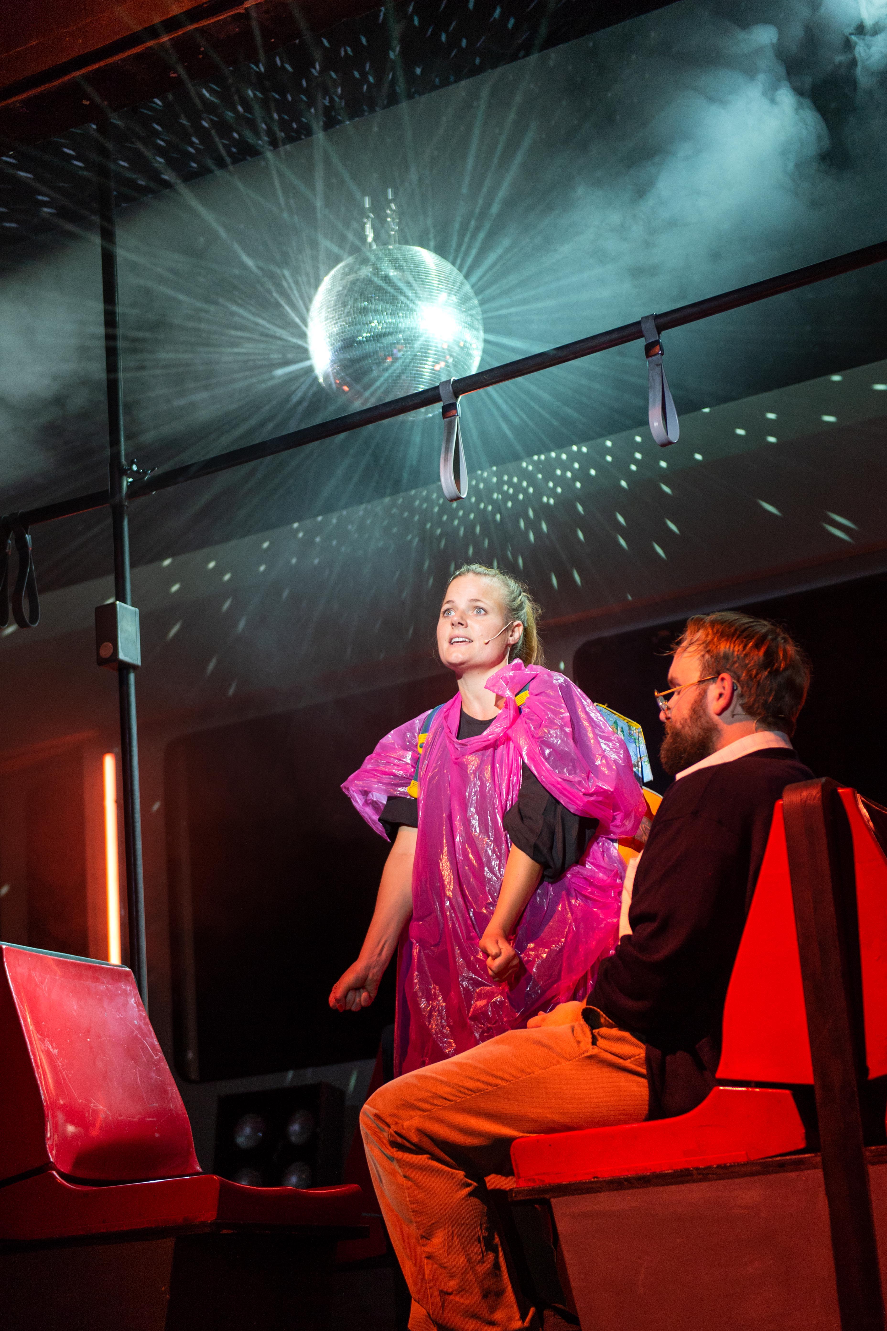Musikalisch begleitet wird das Theaterstück, das stellenweise eher wie ein Musical wirkt, von live gesungenen Songs ganz unterschiedlicher Genres. Die Eröffnung macht eine Interpretation von Girl on fire, im Original von Alicia Keys. Später wechselt sich Marteria (Sekundenschlaf) mit Grönemeyer (Mensch) ab, auf den 90er-Hit Losing my religion folgt Eminems Lose yourself. Eine Achterbahnfahrt, also nicht nur was die völlig verschiedenen Figuren angeht, sondern wortwörtlich auch im musikalischen Sinne. Ein Wagnis? Vielleicht. Zugegeben, wegen der vielen angerissenen Themen (Plastikmüll, Bio-Lifestyle, Horst Seehofer, Umweltzerstörung,…) wirkt „Linie 16“ stellenweise vielleicht etwas überladen. Und doch gelingt Regisseur Solberg und seinem Team am Ende ein einzigartiges Stück über menschliche Hinter- und Abgründe, das zeigt: der Spinner in der Bahn ist eben nicht immer nur irgendein Spinner, sondern kann ein Mensch mit einer bewegenden Lebensgeschichte sein – man muss ihm nur einmal zuhören. Und so unterschiedlich die einzelnen Figuren auch sein mögen, eines haben sie alle gemeinsam: Trotz aller Verzweiflung, trotz allen Ängsten und Sorgen sind sie am Ende des Tages doch irgendwie – zufrieden. Eine Haltung, von der man sich in diesen unruhigen Zeiten vielleicht etwas mitnehmen sollte. Das zu recht begeisterte Publikum jedenfalls reagiert mit minutenlangem Applaus und stehenden Ovationen. Und tatsächlich: Auf der Heimfahrt im Bus sehe ich die Menschen irgendwie mit anderen Augen, höre anders zu und bilde mir nicht vorschnell eine Meinung, sondern denke erst einmal nach über die Menschen und ihre Geschichten.