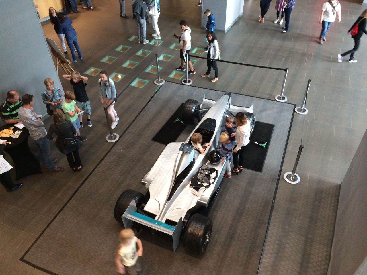 Jetzt haben sich die beiden Freundinnen in die Schlange vor dem glänzenden Rennwagen gestellt, der auffällig in der Eingangshalle steht. Sie wollen sich einmal hineinsetzen und ein Erinnerungsfoto machen. Simone Mergen vom Haus der Geschichte erklärt mir, dass wir hier vor einem originalen Formel-1-Rennwagen stehen. „Die Besucher können sich auch mal im Reifenwechseln erproben. Wir konnten schon viele Wettkämpfe beobachten, wer damit schneller fertig ist.“ Kathrin und Lea wollen als nächstes mit ihren Eltern ins Museum König. Ich erinnere sie an die Spinnen- und Skorpion-Ausstellung und die lebendigen Krabbeltiere, Heuschrecken und Kröten, die im Garten des Museums auf sie warten, aber sie ziehen furchtlos von dannen. Ich bin beeindruckt, traue meinem Magen aber nicht ganz so viel zu und schlage lieber die andere Richtung ein.