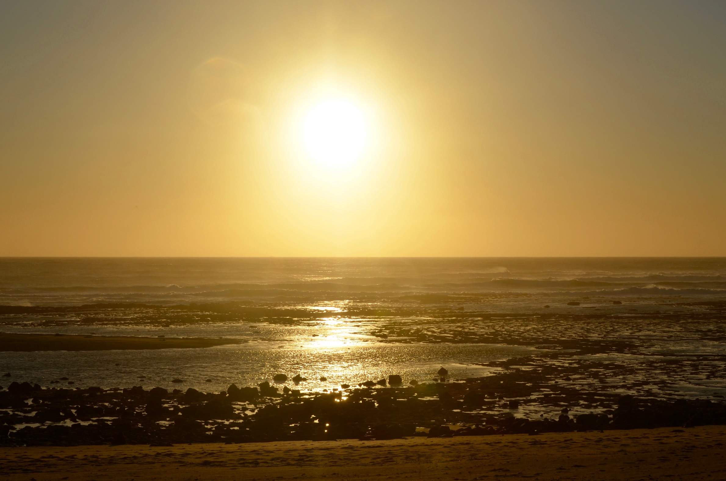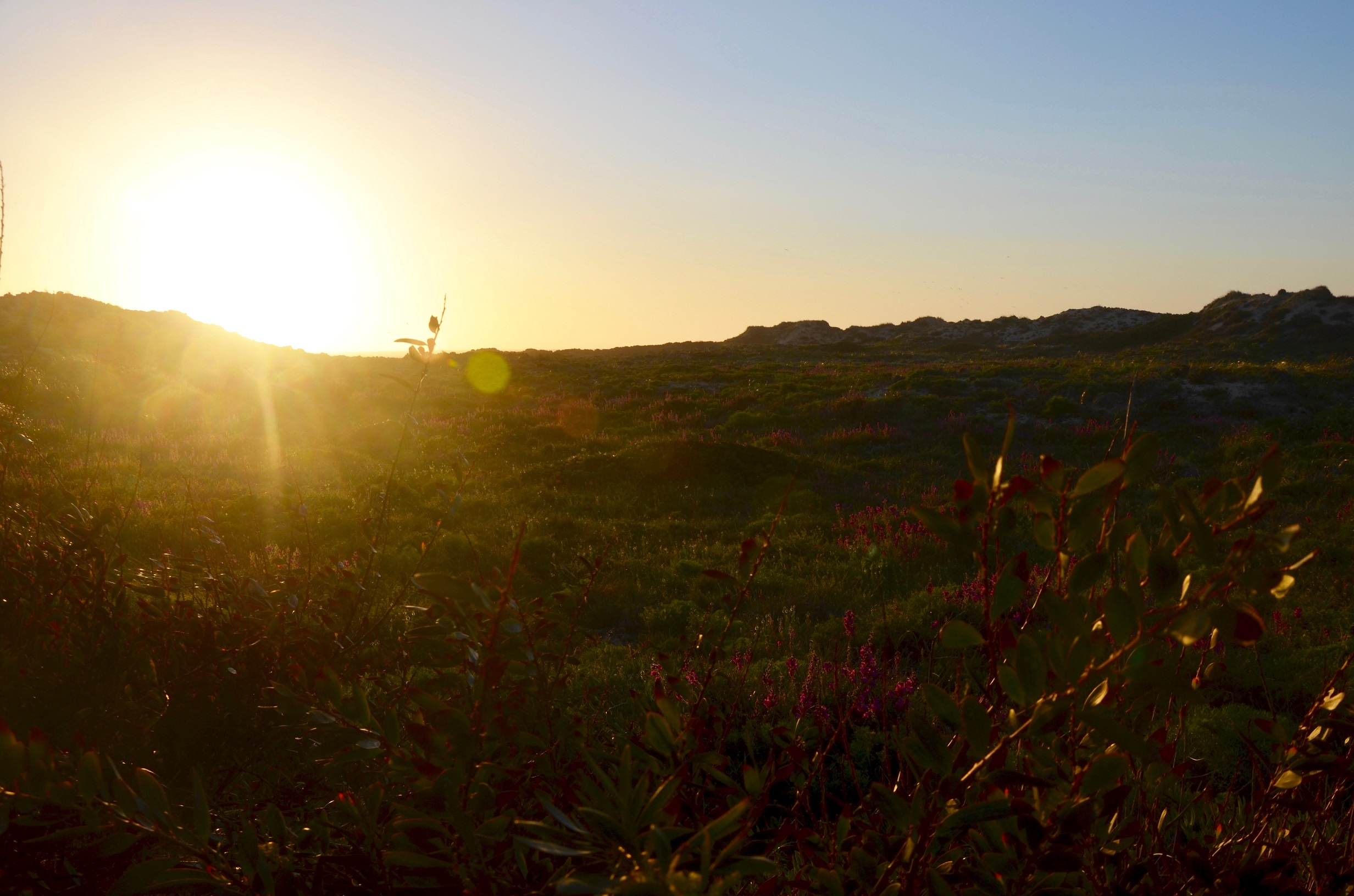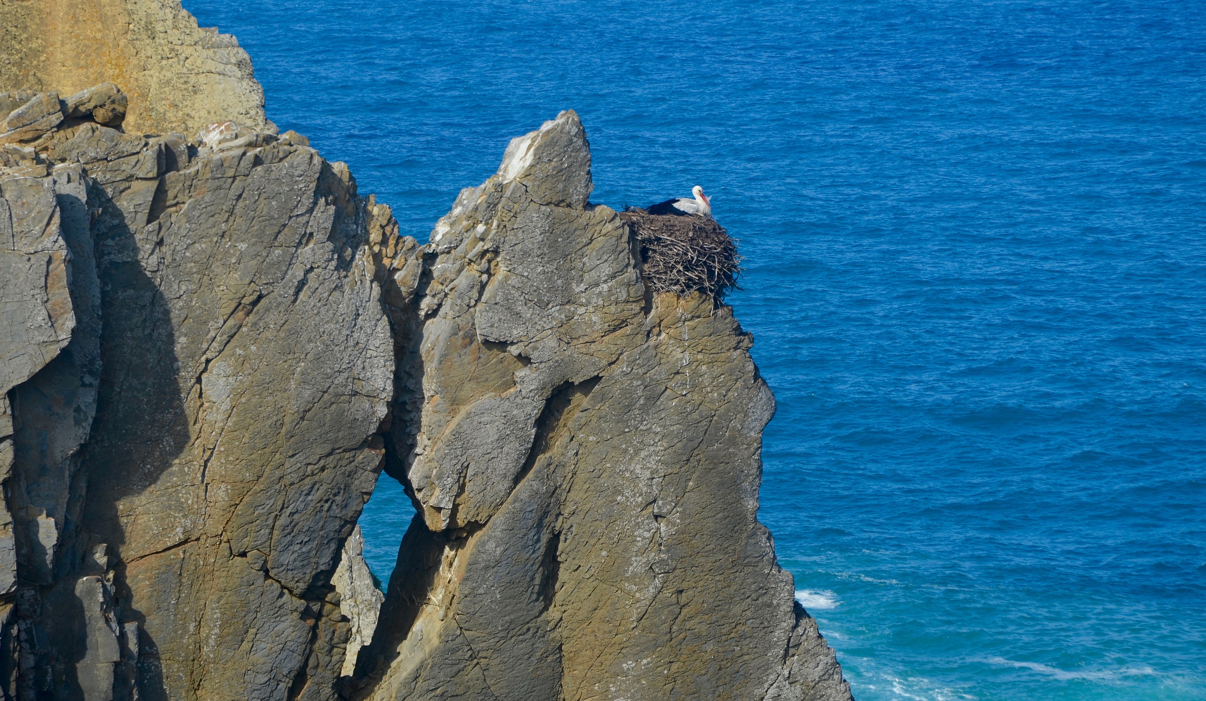 Am nächsten Tag sehen wir Storchennester auf den Steilklippen. Weiterwandern mit Blick auf den Atlantik, die Gefühle von Vasco da Gama nachempfindend. Mittags gibt es ein Stimmungstief, die Sonne knallt auf unsere Köpfe. Ich habe den großen Fehler begangen, keine Sonnenbrille dabei zu haben. Ich kann mir lebhaft vorstellen, wie die Landschaften Portugals im Sommer so verdorrt aussehen können. Wir warten, bis die Sonne untergeht und wir uns an die Bank direkt auf den Klippen setzen können.